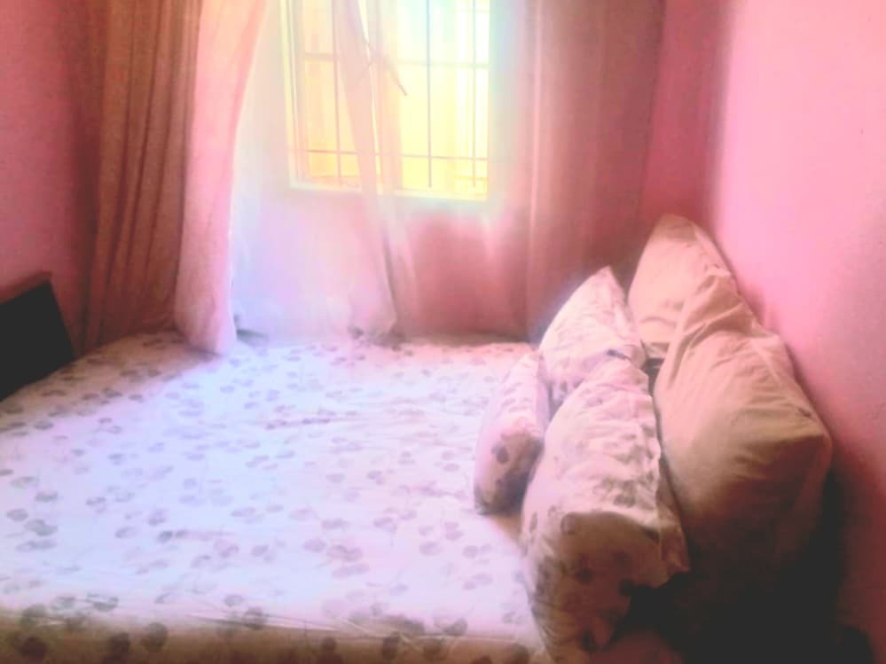 This home offers two lovely bedrooms, providing ample space for rest. One bedroom, with its cheerful pink walls, enjoys plenty of natural light. A well-appointed bathroom serves both bedrooms, ensuring comfort for everyone.