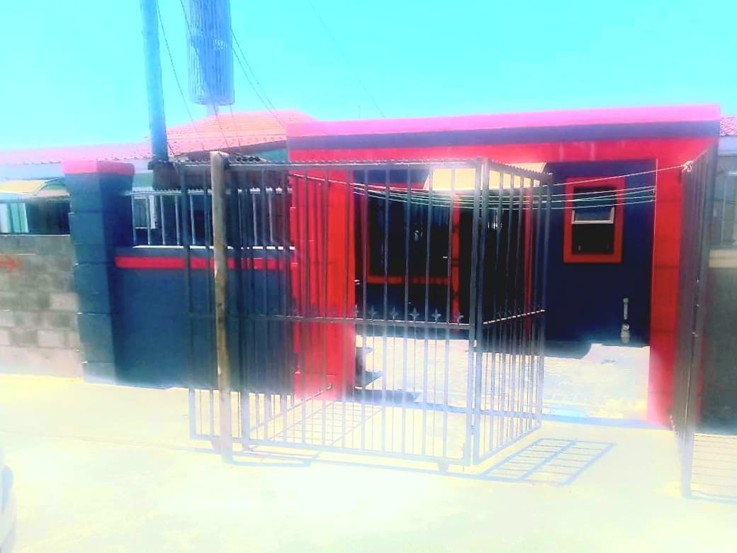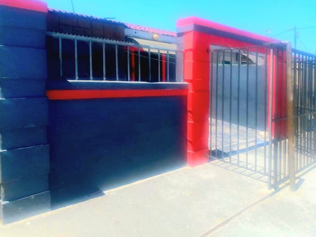 Welcome to this charming 2-bedroom home in Delft, boasting a vibrant red and dark blue exterior that truly pops! You'll feel secure with the sturdy metal front gate and window bars already in place, offering peace of mind from the moment you arrive. The paved entrance area adds to the neat curb appeal, making a great first impression for this lovely property in South Africa.